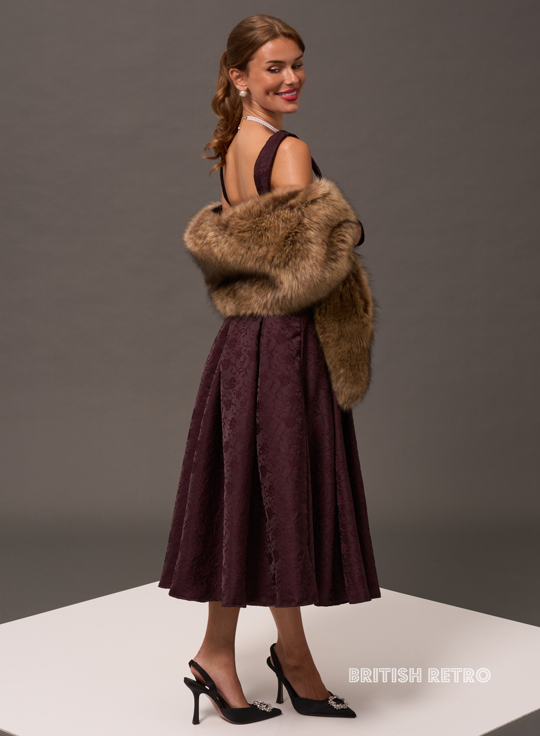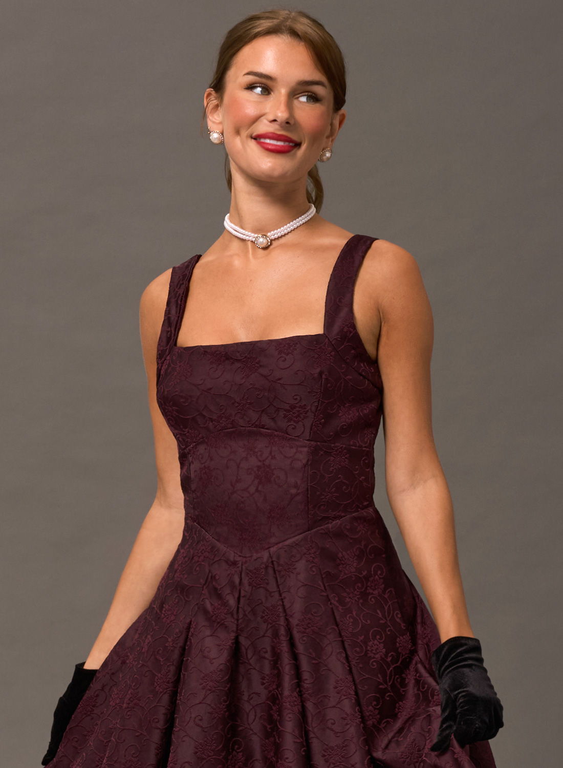 Antoinette Burgundy Vintage Midi Evening Dress