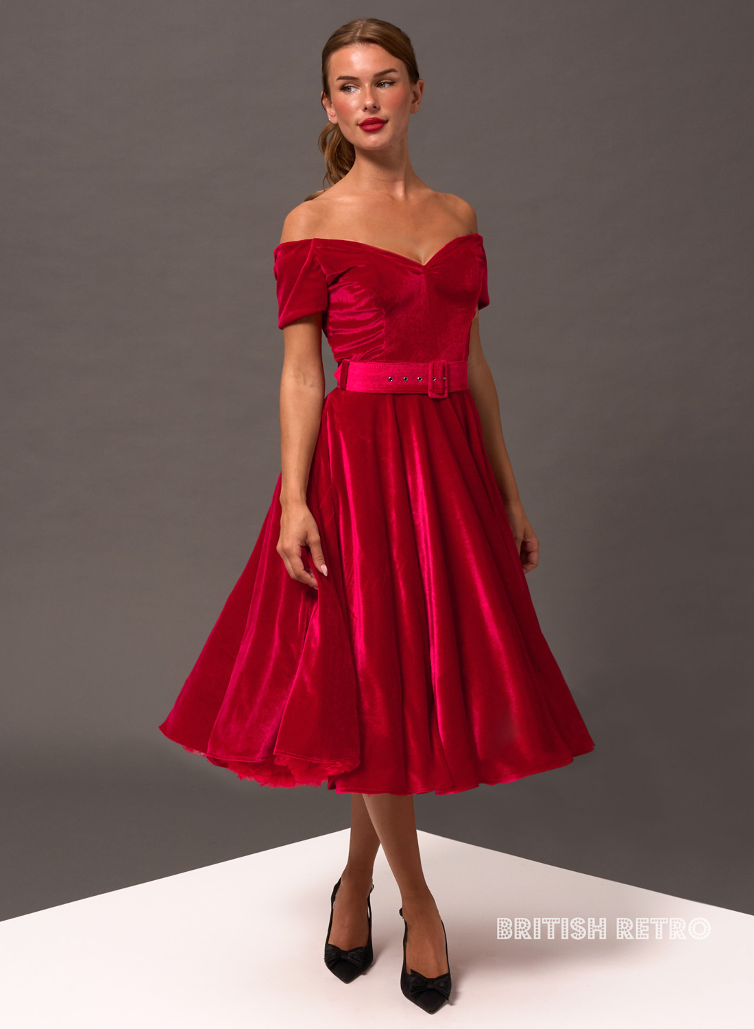 ‘Dee Dee’ Scarlet Velvet 50’s Full Circle Dress