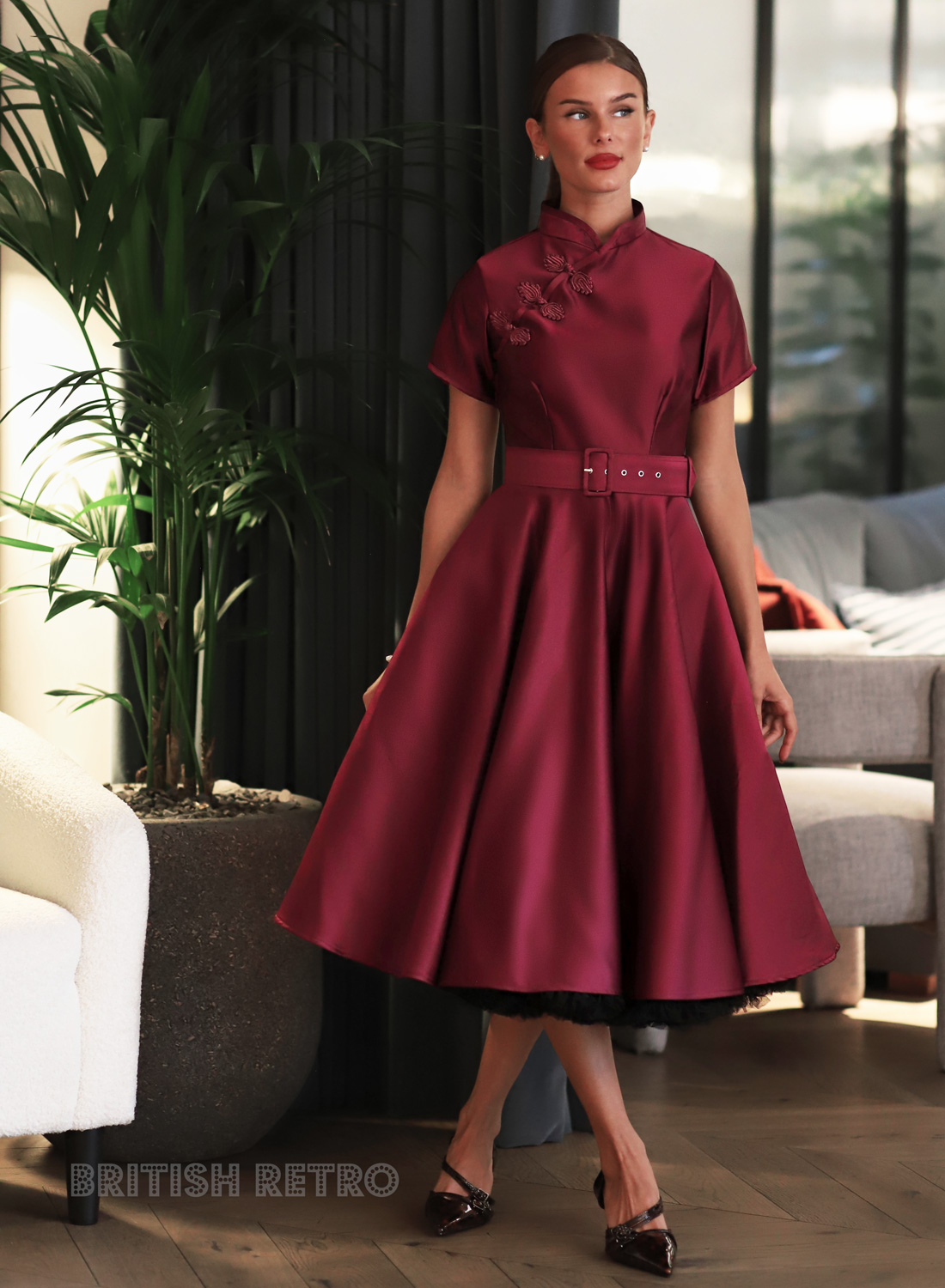 Jasmine Duchess Satin Wine 50s Style Evening Dress